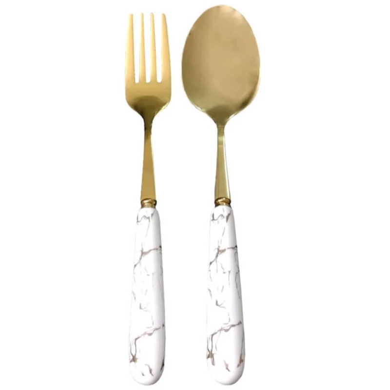 قاشق و چنگال ماربل طلایی 12 پارچه (ست 6 نفره)