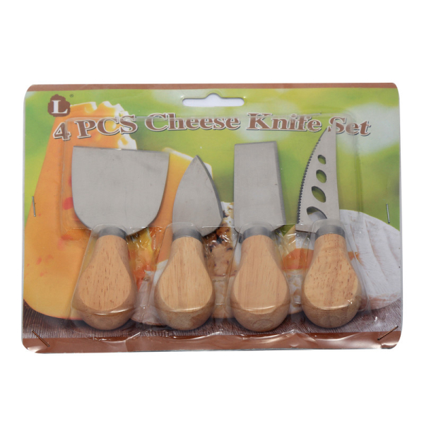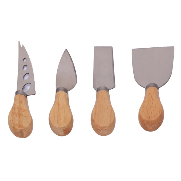 ست چاقو پنیر 4 پارچه با دستههایی از چوب و تیغههای استیل، ارائه کنندهی چندگانهای از ابزارهای کاربردی است. این ست دارای چاقو با کارد ارهای با سوراخ، چاقوی لبهپهن برای برش عمودی و چاقوی کاردک با لبه تیز جهت برش دقیق میباشد.