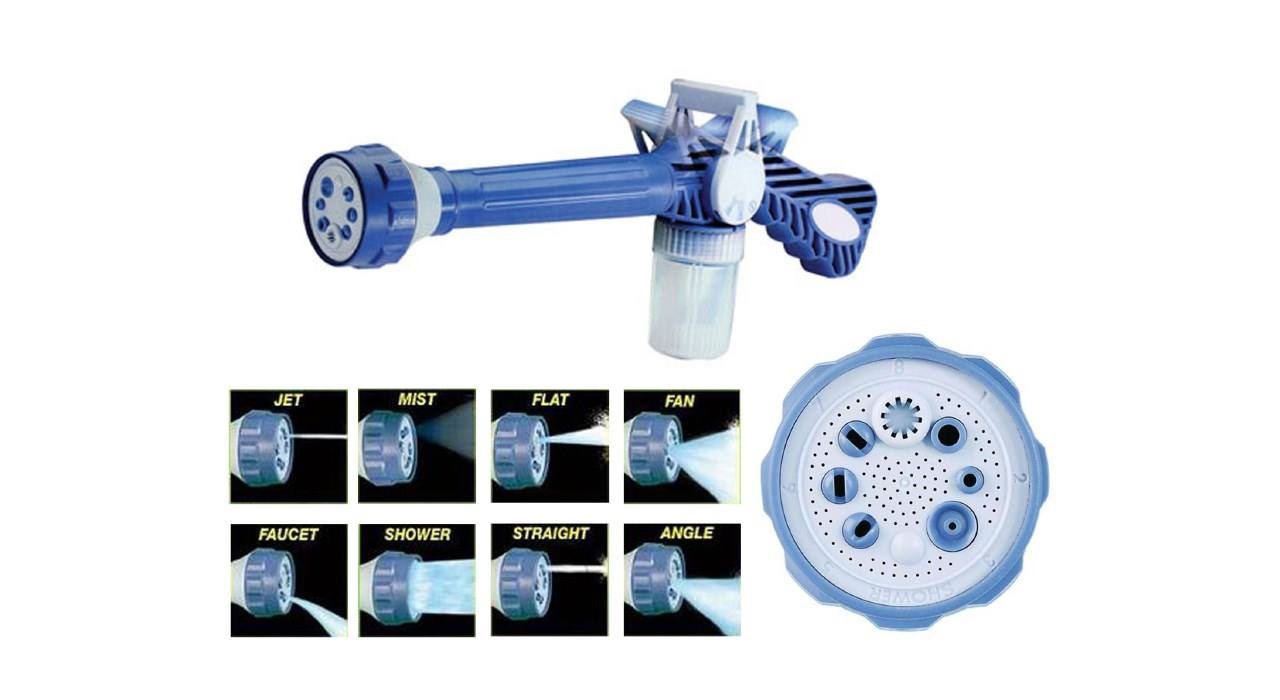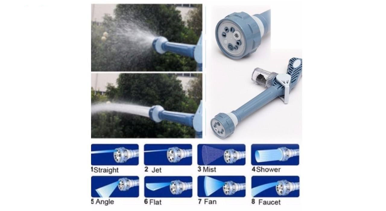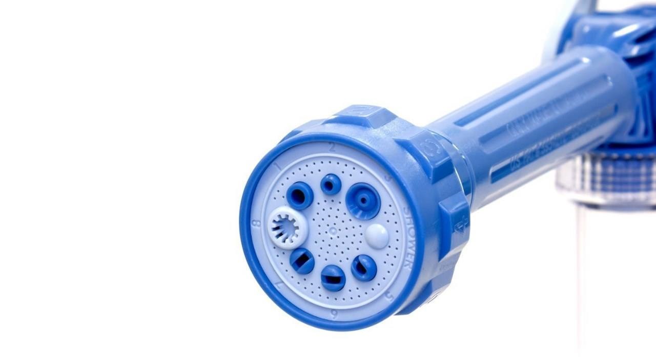 کارواش و آبپاش خانگی ایزی جت Ez Jet تنها برای شستشو خودرو استفاده نمی شود بلکه شما می توانید با این آبپاش کارهایی از قبیل حیاط شستن ، آب یاری گل ها ، شستشوی در و دیوار ، شستشوی شیشه و ... را نیز انجام دهید . 8 حالت خروجی این کارواش به شما اجازه می دهد به هر روشی که می خواهید مسیر آب را تغییر دهید و استفاده کنید. این نازل باعث می شود که مصرف آب به میزان چشمگیری پایین بیاید.مزایای استفاده از کارواش ایزی جت عبارت است از : شستشوی سطوح تا ارتفاع زیاد بدون نیاز به نردبان،شستشوی کف و رفع جلبک و جرم،باز کردن آبراه ها و معابر،آبیاری ملایم گل های ظریف،صرفه جویی در مصرف آب تا بیش از 50 درصد و ...