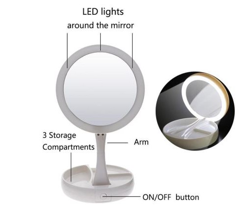 آینه آرایشی Foldaway مدل چراغ دار با قابلیت بزرگنمایی