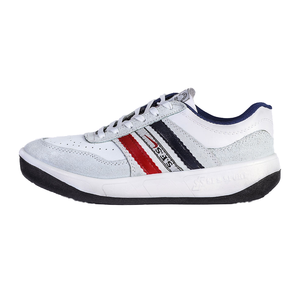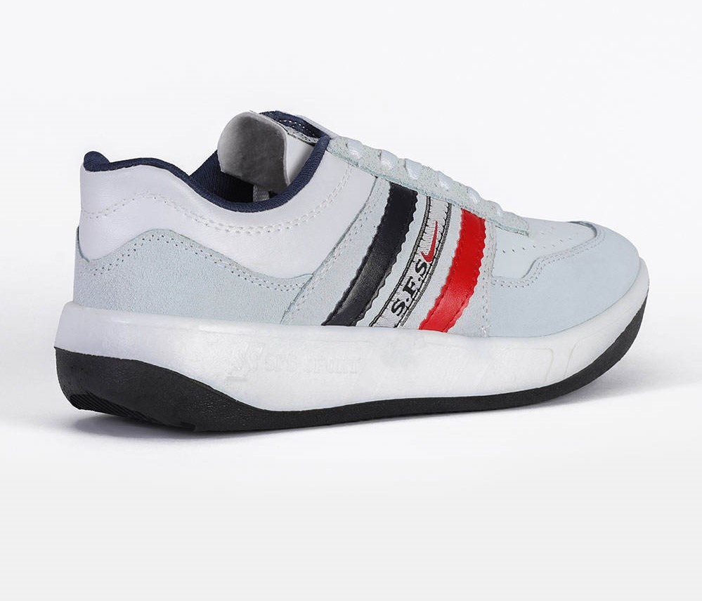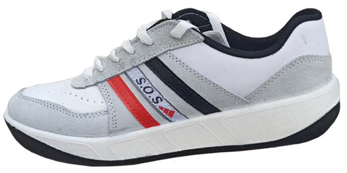 زیره این کفش از جنس PU (پلی یورتان) است که علاوه بر اینکه قطر مناسبی دارد، با انحنای خیلی خوبی که در کف پا ایجاد می کند ، راحتی در هنگام فعالیت روزمره را ایجاد می کند. کفی پا نیز به صورت دور دوخت داخلی است که باعث استحکام و اتصال خوب کف کفش به رویه می شود و مقاومت این نوع کفش را به خوبی بالا می برد. این نوع کفش ها با استفاده از بند قابل تنظیم هستند که اگر در انتخاب کفش سایز بزرگتری انتخاب نمایید، به راحتی با استفاده از بند می توانید کفش را تنظیم نمایید. رویه کفش از جنس چرم طبیعی گاوی درجه یک تبریز ساخته شده است که تنفس پا را تامین می کند. در کناره های این کفش خطوطی طراحی شده است که شبیه به پرچم می باشد و در اصطلاح عمومی به این نوع کفش ها ، کفش ساپورت روزمره نیز اطلاق می شود. همچنین این نوع کفش ها با نوشته SOS بر روی کفش ها شناخته می شود که مخفف Shoes For Support می باشد و با نام کفش SFS (یا کفش اس اف اس) شناخته می شود.