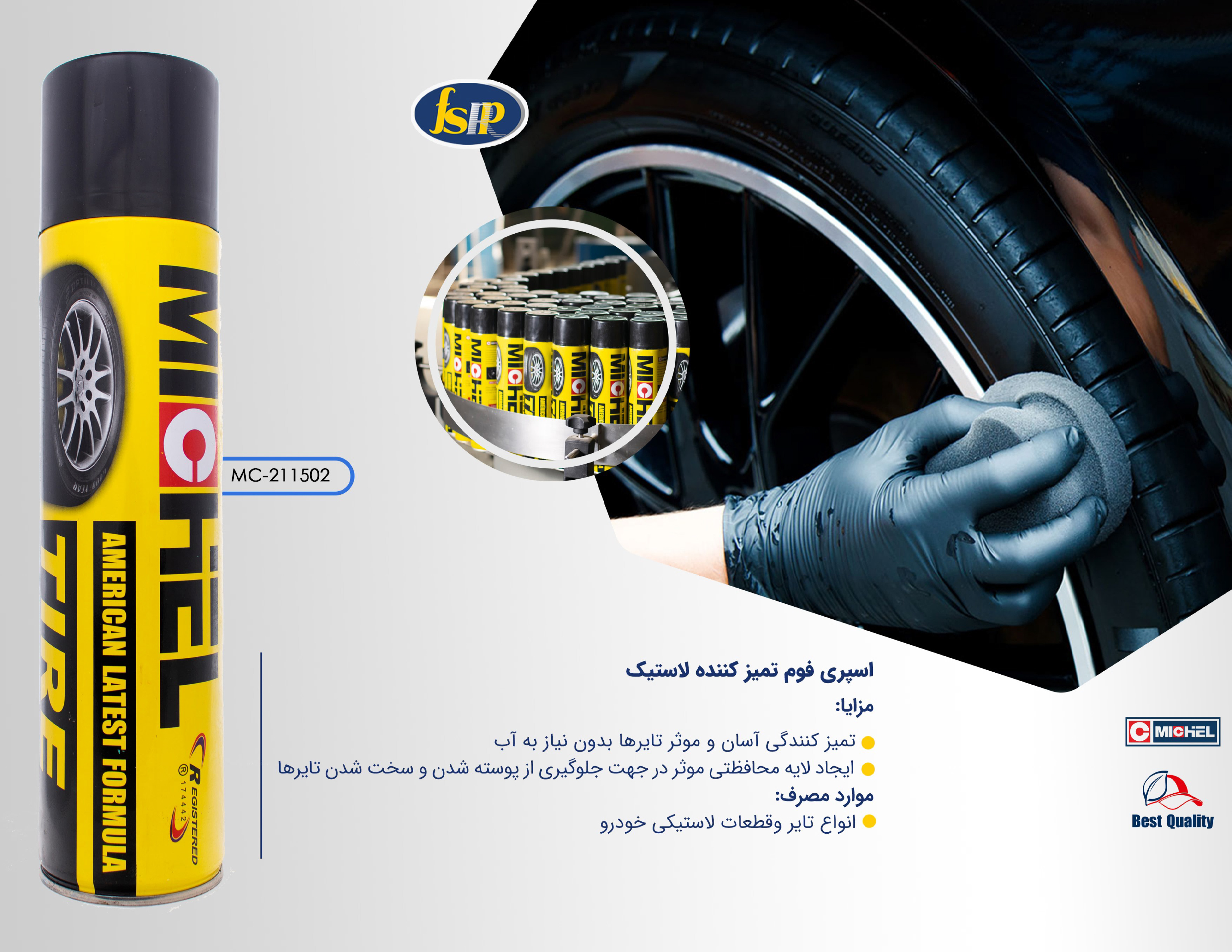 اسپری تمیز کننده لاستیک خودرو مایکل مدل 174442 ظرفیت 650 میلی لیتر