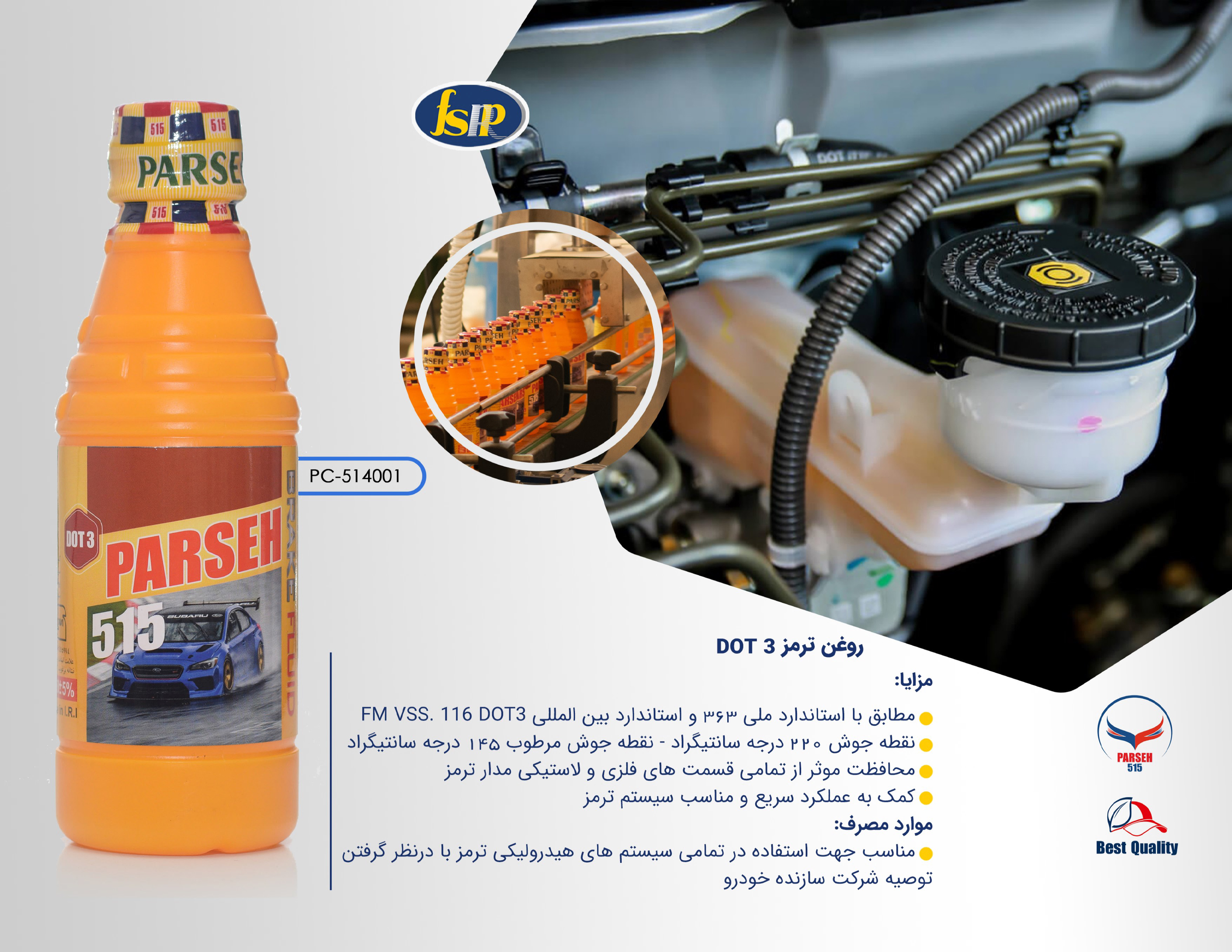 روغن ترمز خودرو پارسه 515 مدل DOT3 حجم 250 میلی لیتر