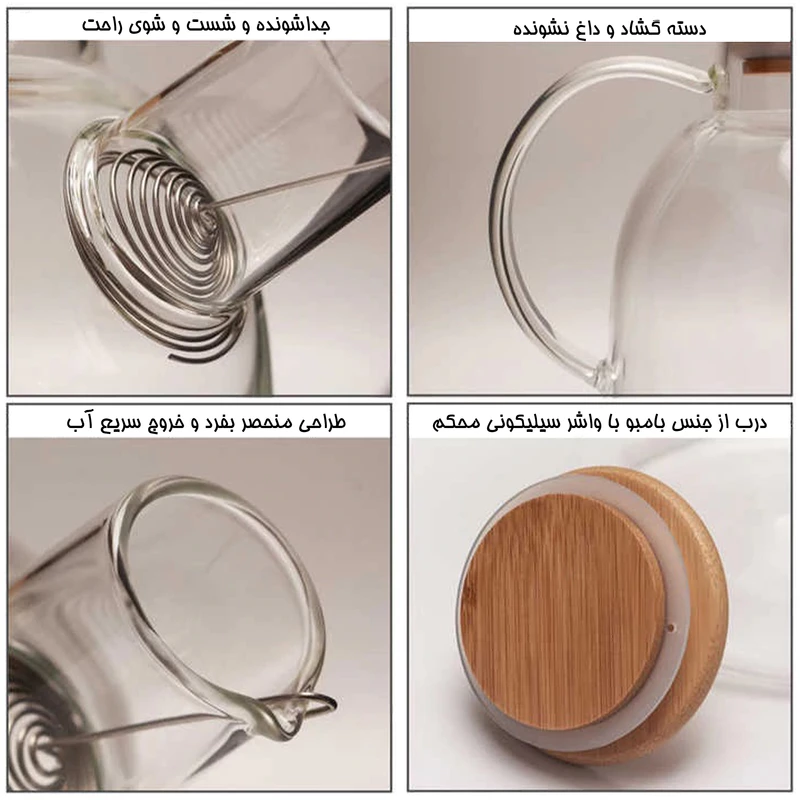 قوری پیرکس درب بامبو 1500 میلی لیتر