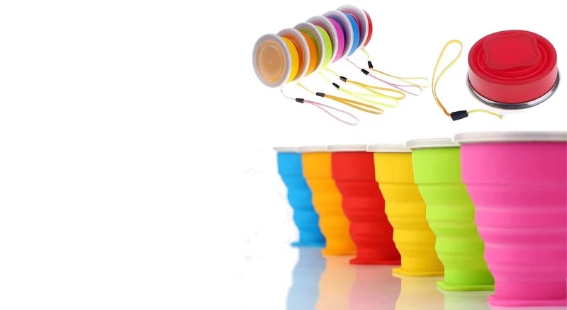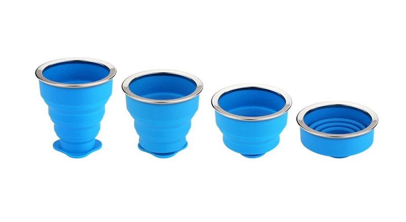 لیوان سفری تاشو سیلیکونی لبه فلزی